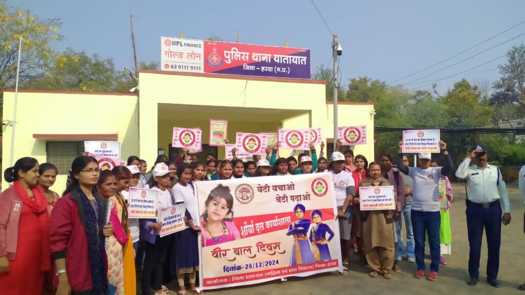 हरदा / ‘‘वीर बाल दिवस’’ के अवसर पर गुरूवार को जिले के आंगनवाड़ी केन्द्रों में महिलाओं व बच्चों को गुरू गोविंद सिंह के बालकों जोरावर सिंह और फतेह सिंह के बलिदान और वीर बाल दिवस के बारे में बताया गया। इसके अलावा बाल कल्याण समिति कार्यालय हरदा में भी वीर बाल दिवस पर कार्यक्रम आयोजित कर सशक्त वाहिनी की छात्राओं को वीर बाल दिवस के संबंध में जानकारी दी गई। इस अवसर पर कार्यक्रम में जिला कार्यक्रम अधिकारी महिला एवं बाल विकास श्री संजय त्रिपाठी ने महिला सशक्त वाहिनी कक्षा की छात्राओं से लिखित परीक्षा और फिजिकल परीक्षा में प्रशिक्षण लेने के लिये नियमित रूप से उपस्थित होने के लिये कहा। इस दौरान श्री त्रिपाठी ने वीर बाल दिवस के बारे में संक्षिप्त जानकारी दी।
