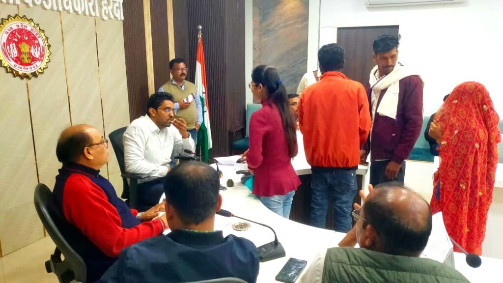 हरदा/ कलेक्टर श्री सिद्धार्थ जैन ने मंगलवार को कलेक्टर कार्यालय के सभाकक्ष में आयोजित ‘जनसुनवाई’ कार्यक्रम में आए नागरिकों की समस्याएं सुनी और उपस्थित अधिकारियों को नागरिकों की समस्याओं के निराकरण के लिए निर्देश दिए। इस अवसर पर अपर कलेक्टर श्री पुरूषोत्तम कुमार, संयुक्त कलेक्टर श्री सतीश राय, जिला पंचायत के अतिरिक्त मुख्य कार्यपालन अधिकारी श्री प्रवीण इवने, एसडीएम हरदा श्री अशोक डेहरिया, एसडीएम टिमरनी श्री संजीव नागू, एसडीएम खिरकिया सुश्री शिवांगी बघेल सहित अन्य जिला अधिकारी उपस्थित थे।
