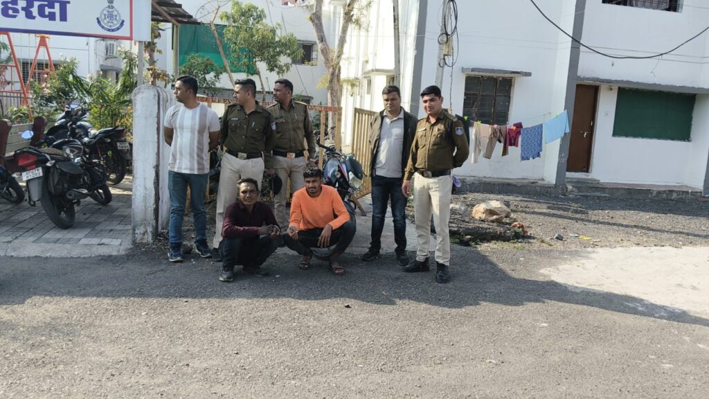 घटना का विवरण:- दिनांक 04/02/26 को फरियादी धन्नालाल पाटिल पिता रामेश्वर पाटिल निवासी ग्राम नीमचखुर्द चारखेडा के व्दारा थाना हाजिर आकर रिपोर्ट किया कि मैं निमाचा चारखेडा रहता हूँ खेती किसानी करता हूँ मेरी मोटर सायकल हीरो कम्पनी की एच एफ डीलक्स काले रंग की जिसका रजिस्टेशन नम्बर MP 47ML5478 चैचिस नम्बर MBLHAW063K4L06242 है मेने दिनाँक 03/02/26 को दोपहर 3 बजे मेरे मेरे घर के सामने गेट के बाहर चाबी लगी हुई खड़ी करके घर के अंदर चला गया था फिर थोडी देर बाद वापस आकर देखा तो मेरी मोटर सायकल जहा पर मैने खडी की थी वहाँ पर नहीं मिली फिर मैने मेरी मोटर सायकल को आस पास गाँव में तलाश किया जिसका कोई पता नहीं चला कोई अज्ञात व्यक्ति मेरी मोटर सायकल हीरो कम्पनी की एच एफ डीलक्स चोरी कर ले गया है की रिपोर्ट पर से थाना टिमरनी में अपराध क्र 84/26 धारा 303 (2) बीएनएस का अज्ञात आरोपी के विरूध्द कायम कर विवेचना में लिया गया। तत्काल थाना प्रभारी टिमरनी के व्दारा टीम गठित कर अज्ञात आरोपी एवं मोटरसाईकल की तलाश पतारसी हेतु टीम को रवाना किया। जगह जगह लगे सीसीटीव्ही कैमरो को चैक करते हुये आप पास तलाश किया गया। दो व्यक्ति को अभीरक्षा में लेकर के तकनीकी एवं कड़ाई से पूछताछ करने पर उक्त आरोपी अपना नाम राजकुमार पिता सुंदरलाल पटनारे उम्र 25 साल निवासी ग्राम कनारदा थाना सिविल लाईन हरदा एवं चन्दर पिता रामदास सरयाम उम्र 40 साल निवासी ग्राम रहटाकला थाना सिराली हरदा का होना बताया जिन्होने घटना कारित (मोटरसाईकल चोरी करना बताया जिनको क्रमशः अभी रक्षा में लेकर के पूछताछ करते पृथक पृथक गिरफ्तारी पत्रक, आरोपियों का मेमोरेंडम तैयार किया गया आरोपियन के बताए स्थान से पेश करने पर मोटरसाईकल विधिवत जप्त कर कब्जा पुलिस लिया गया एवं आरोपीयो को माननीय न्यायालय पेश किया गया उक्त मोटर साईकल की विवेचना एवं बरामद की कार्रवाई में थाना प्रभारी मुकेशगौड, सहायक उप निरीक्षक अभय मवासे आर 281 पिन्टू उईके की प्रशंसनीय भूमिका रही
