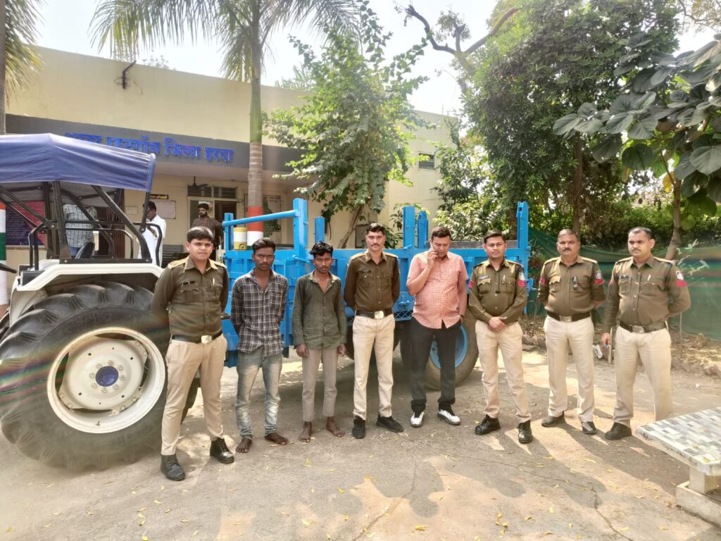 पुलिस कार्यवाहीः- विवेचना के दौरान श्रीमान पुलिस अधीक्षक महोदय श्री शंशाक हरदा के निर्देशन में, श्रीमान अतिरिक्त पुलिस अधीक्षक महोदय श्री अमित मिश्रा, अनुविभागीय अधिकारी (पुलिस) महोदय टिमरनी आकांक्षा तलया टिमरनी के मार्ग दर्शन मे तत्परता से टीम गठित कर आरोपी की तलाश पतारसी के दौराने मुखबिर सूचना प्राप्त हुई कि ग्राम अमलाड़ा कला थाना शिवपुर मे एक ट्राली नया कलर पुती खड़ी है जिसे खरीदेने के लिये कुछ लोग आये थे जो थाना रहटगौव क्षेत्र के ग्राम मोगराढाना से चोरी गई ट्राली जैसी लग रही है। मुखबिर की सूचना तस्दीक फरियादी मगल यादव से करायी गई जो पहचान करने के बाद आरोपी के कब्जे से ट्राली को जप्त किया गया विवेचना के दौरान संदेही आदर्श उइके से हिकमत अमली से पूछताछ किया गया जिसने अपने साथीयो के साथ मिलकर ग्राम मोगराढाना से ट्राली को चोरी करना बताया और घर ग्राम अमलाड़ा लाकर ट्राली की पहचान मिटाने के लिये आसमानी नीले रंग का पेंट करना बताया नाम आरोपी – 1. आदर्श उइके 2. लोकेश पाल 3. नेपाल कोरकू